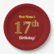 Red, Faux Gold 17th Birthday + Custom Name Paper Plate