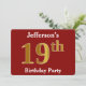 Red, Faux Gold 19th Birthday Party + Custom Name Invitation