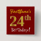 Red, Faux Gold 24th Birthday, With Custom Name 2 Inch Square Button