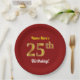 Red, Faux Gold 25th Birthday + Custom Name Paper Plate