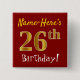 Red, Faux Gold 26th Birthday, With Custom Name 2 Inch Square Button