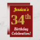 Red, Faux Gold 34th Birthday Celebration + Name Invitation
