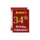 This birthday party invitation design features a message like "Jessica’s 34th Birthday Celebration!", where the name can be personalized, and where the number "34th" has a faux gold-like appearance. It also features a red coloured background. The event details on the back can be customized. It could be used to invite people to somebody’s thirty fourth birthday celebration or birthday party. [~Z0000120]