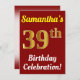 Red, Faux Gold 39th Birthday Celebration + Name Invitation