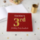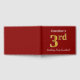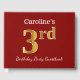 This guest book design features the ordinal number "3rd" with a faux gold-like appearance. It also features a personalized name, and a red coloured background. It could be used at a party for somebody celebrating their third birthday. [~Z0000055]