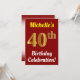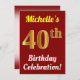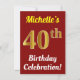 Red, Faux Gold 40th Birthday Celebration + Name Invitation