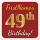 Red, Faux Gold 49th Birthday + Custom Name Square Paper Coaster