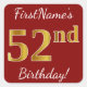 Red, Faux Gold 52nd Birthday + Custom Name Sticker