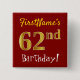 Red, Faux Gold 62nd Birthday, With Custom Name 2 Inch Square Button