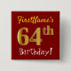 Red, Faux Gold 64th Birthday, With Custom Name 2 Inch Square Button