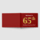 This guest book design features the ordinal number "65th" with a faux gold-like appearance. It also features a custom name, and a red coloured background. It could be used at a party for somebody celebrating their sixty fifth birthday. [~Z0000055]