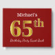 Red, Faux Gold 65th Birthday Party + Custom Name Guest Book