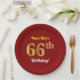 Red, Faux Gold 66th Birthday + Custom Name Paper Plate
