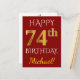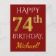 Red, Faux Gold 74th Birthday + Custom Name Postcard