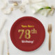Red, Faux Gold 78th Birthday + Custom Name Paper Plate