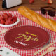 This simple, personalized, birthday-themed paper plate design features a customizable message like "First-Name’s 79th Birthday!", where the name can be changed, and with the "79th" having a faux/imitation gold-like appearance. It also features a red coloured background. Paper plates like these could perhaps be used at a party being held to celebrate somebody’s seventy ninth birthday. [~Z0000144]