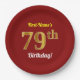 Red, Faux Gold 79th Birthday + Custom Name Paper Plate
