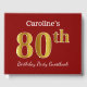 This guest book design features the ordinal number "80th" with a faux gold-like appearance. It also features a customized name, and a red coloured background. It could be used at a party for somebody celebrating their eightieth birthday. [~Z0000055]
