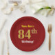 Red, Faux Gold 84th Birthday + Custom Name Paper Plate