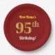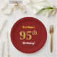 Red, Faux Gold 95th Birthday + Custom Name Paper Plate