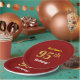 This simple, customized, birthday-themed paper plate design features a customizable message like "First-Name’s 95th Birthday!", where the name can be changed, and with the "95th" having a faux/imitation gold-like appearance. It also features a red coloured background. Paper plates like these could perhaps be used at a party being held to celebrate somebody’s ninety fifth birthday. [~Z0000144]