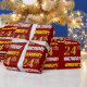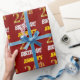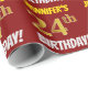 This wrapping paper design features a message like "JENNIFER’S 24th BIRTHDAY!", with the "24th" having a faux/imitation gold-like colour appearance, and with the name and "BIRTHDAY" in a fun, bold font. The name can be personalized, and the background is coloured red. Wrapping paper like this could perhaps be used when wrapping birthday gifts being given to somebody in celebration of their twenty fourth birthday. [~Z0000204]