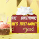 This wrapping paper design features a message like "FIRST-NAME’S 2nd BIRTHDAY!", with the "2nd" having a faux/imitation gold-like colour appearance, and with the name and "BIRTHDAY" in a fun, bold font. The name can be personalized, and the background is coloured red. Wrapping paper like this could perhaps be used when wrapping birthday gifts being given to somebody in celebration of their second birthday. [~Z0000204]