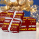This wrapping paper design features a message like "FIRSTNAME’S 7th BIRTHDAY!", with the "7th" having a faux/imitation gold-like colour appearance, and with the name and "BIRTHDAY" in a fun, bold font. The name can be customized, and the background is coloured red. Wrapping paper like this could perhaps be used when wrapping birthday gifts being given to somebody in celebration of their seventh birthday. [~Z0000204]
