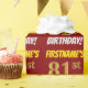 This wrapping paper design features a message like "FIRSTNAME’S 81st BIRTHDAY!", with the "81st" having a faux/imitation gold-like colour appearance, and with the name and "BIRTHDAY" in a fun, bold font. The name can be personalized, and the background is coloured red. Wrapping paper like this could perhaps be used when wrapping birthday gifts being given to somebody in celebration of their eighty first birthday. [~Z0000204]
