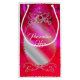 Features a red and pink hued feather boa draped in sparkeling, white diamonds . The back features a transluscent, ornate mirror for more personalization. The front can also be personalized if you wish. For a romantic ocassion.