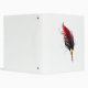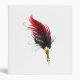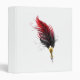 Artistically drawn, antique fountain pen embellished with dark red feather on white background.