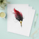 Artistically drawn, antique fountain pen embellished with dark red feather on white background.