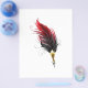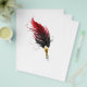 Artistically drawn, antique fountain pen embellished with dark red feather on white background.