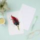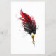 Artistically drawn, antique fountain pen embellished with dark red feather on white background.