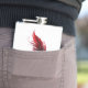 Artistically drawn, antique fountain pen embellished with dark red feather on white background.