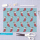 Red Festive Christmas Stockings Pattern On Blue Tissue Paper