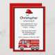 Fire truck birthday invitations. Invite your guests in style with this adorable red and black fire truck birthday invitation. Perfect for a firefighter themed party! Easily customize with your party information.