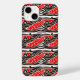 RED FISHES IN THE SEA WAVES Black White Pattern Case-Mate iPhone Case