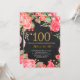 Red Floral 100th Birthday Invitation for Women. Watercolor Botanical Floral Flower. Gold Glitter. Chalkboard Background. Pink Peonies Floral Flowers. Adult Birthday. For further customization, please click the "Customize it" button and use our design tool to modify this template.