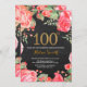 Red Floral 100th Birthday Invitation Gold Glitter