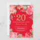 Red Floral 20th Birthday Gold Glitter and Red Invitation