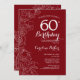 Red White Floral 60th Birthday Party Invitation. Minimalist modern design featuring botanical outline drawing accents and typography script font. Simple trendy invite card perfect for a stylish female bday celebration. Can be customized to any age. Printed Zazzle invitations or instant download digital printable template.