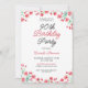 A vibrant floral design featuring red watercolor blossoms adorning the corners, paired with elegant script and serif text — a beautiful way to honour a milestone 90th birthday.