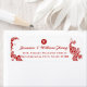 Elegant bohemian red / white peacock design with floral details and a tail made of paisley shapes asian / chinese wedding return address label.