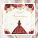 This elegant and glamourous Quinceañera napkin features a beautiful princess with dark hair in a tiara and red ball gown. The text combines handwritten script and modern sans serif fonts for a classy and sophisticated look. The floral arrangements and gold confetti create the perfect blend of rustic and chic.