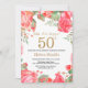 Red Floral Surprise 50th Birthday Gold Glitter Invitation
