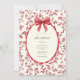 Pretty red vines dobnein watercolors and gardenias flowing creating a lovely background for this vintage scalloped frame topped with a quaint bow and flowing ribbons. Perfect for any season wedding.