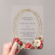 A clear, transparent background decorated with red and white roses, florals. A faux gold oval frame. Personalize and add your names and details.