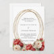 Red florals gold frame wedding invitation