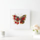 Red flower butterfly with red roses square wall clock